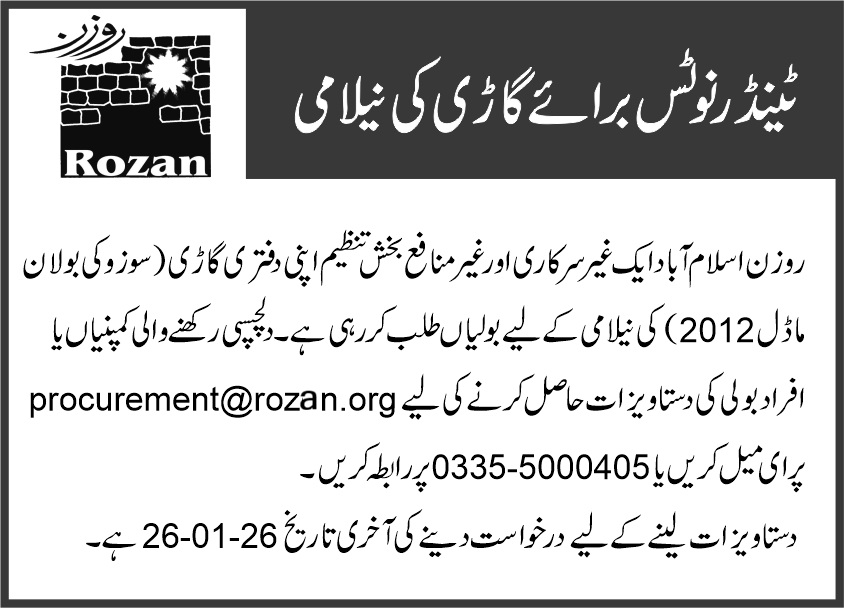 Tender Notice of used Suzuki Bolan